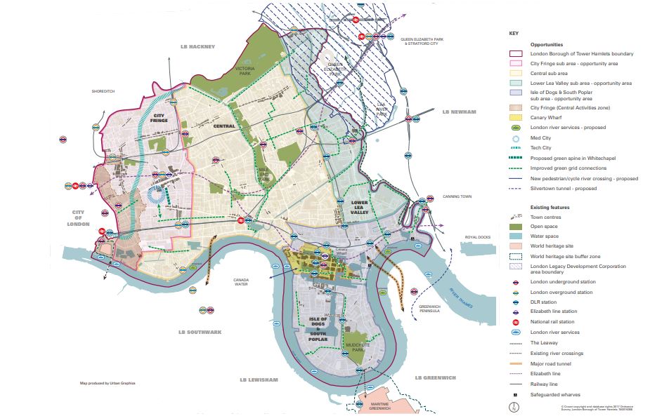 Relevant policies in the Local Plan: D.DH2 Attractive streets, spaces & public realm & S.SG1. areas of growth & opportunity within Tower Hamlets.