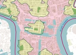 Relevant policies in the Local Plan: D.DH2 Attractive streets, spaces & public realm, S.OWS1 Creating a network of open spaces, D.OWS3 Open space and green grid networks, S.OWS2 Enhancing the network of water spaces & D.OWS4 Water spaces.