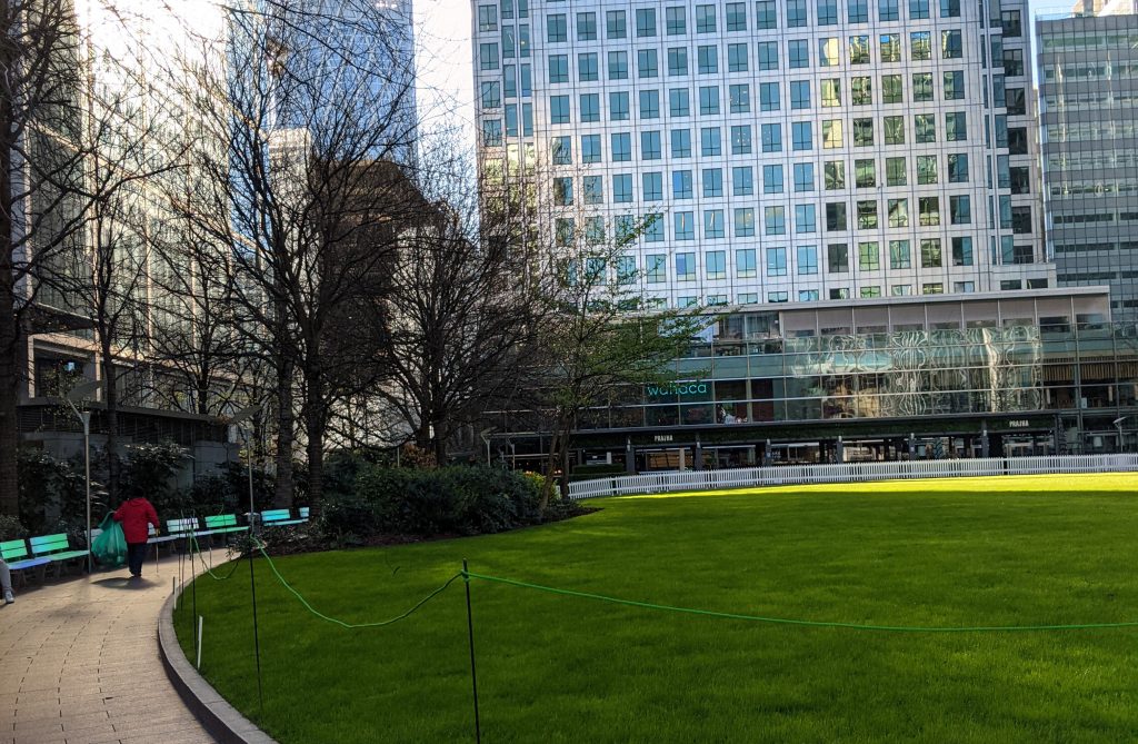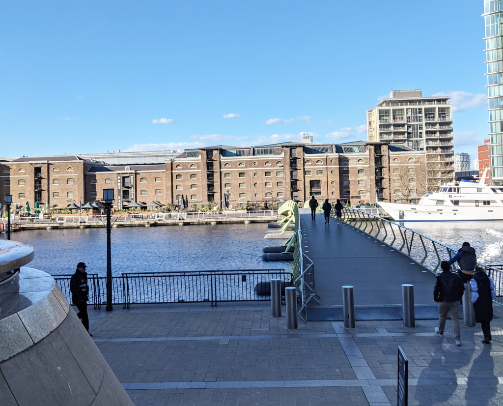 The water is equally present, if not more, in the area and it can be seen and experienced through the canals that surround Canary Wharf, the fountains and other water features. Bridges crossing the canals, benches along the public realm and elevated grounds offer opportunities for views and vistas to the water. In addition, temporary art installations by and on the water create some additional opportunities for interactions.